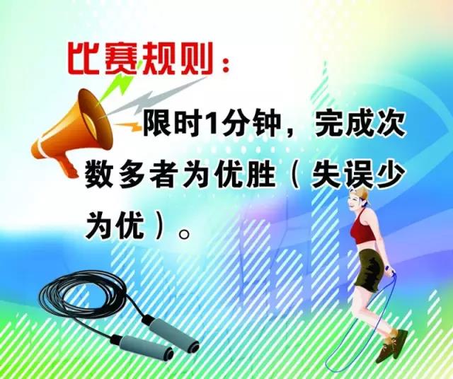 提示:比賽用跳繩自備。(專人進(jìn)行計數(shù))