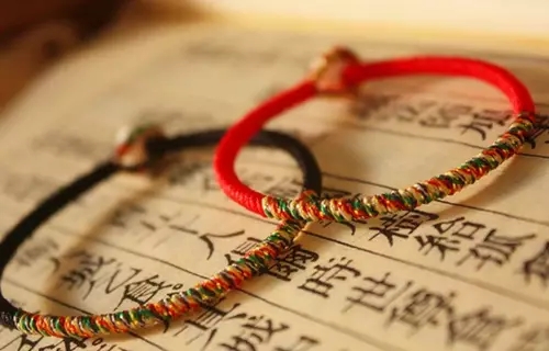 簡單的以五色絲線合股成繩,系于臂膀;在五彩繩上綴飾金錫飾物,掛于項(xiàng)頸;五彩繩折成方勝,飾于胸前;五彩繩結(jié)為人像戴之;以五彩絲線繡繪日月星辰烏獸等物,敬獻(xiàn)尊長。此俗始于漢代。